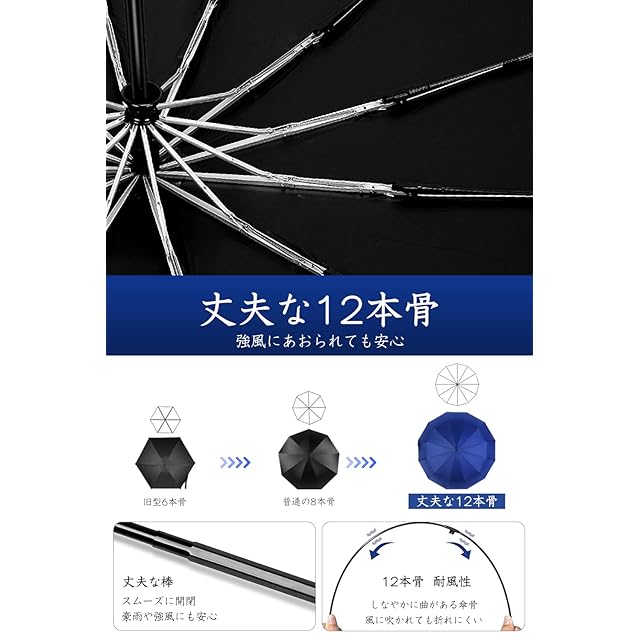✅✅【頑丈な12本骨高強度傘】 頑丈なアルミ合金とグラスファイバーで作られた12本骨折りたたみ傘です。 柔軟性と強度を併せ、耐風性と耐久性ともに向上させた折り畳み傘です。 空気力学に基づいて風を受け流す構造で設計されているので、強い風でびっくり返っても元に戻ります。 また、コーティングを噴霧しているので錆びることは心配がありません。※ご注意:こちらの商品は12本骨ですので、10本骨ではありません。ご了承頂いた上でご購入ください。