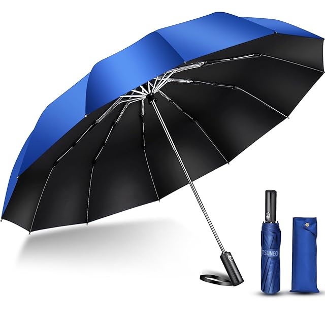 折りたたみ傘 【新登場・特大12本骨・ビックサイズ】 折り畳み傘 メンズ 大きい ワンタッチ 自動開閉 メンズ傘 耐風 超撥水 おりたたみ傘 梅雨対策 台風対応 晴雨兼用 男子日傘 UVカット 紫外線遮蔽 メンズ レディース 収納ポーチ付き (ブルー)