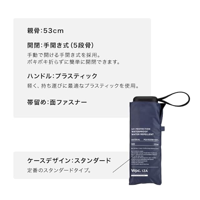 Wpc. IZA 男の晴雨兼用傘【コンパクト】COMPACT ネイビー [遮光率100%・UVカット率100%・UPF50+・遮熱] 日傘 メンズ イーザ 男性 折りたたみ傘 53cm 小さい おしゃれ シンプル 無地 ZA003-910-102