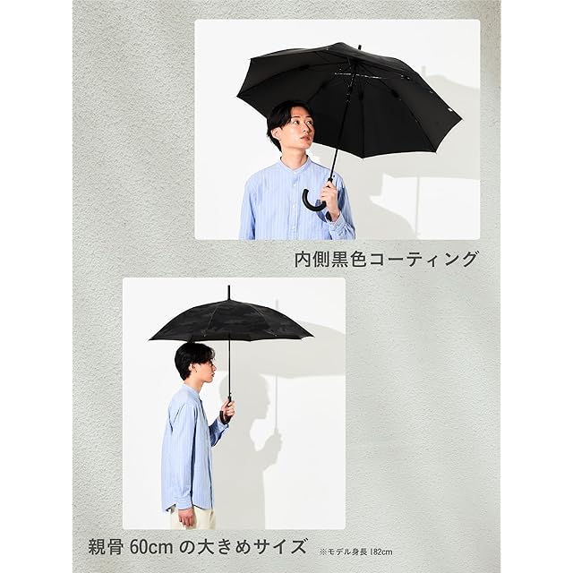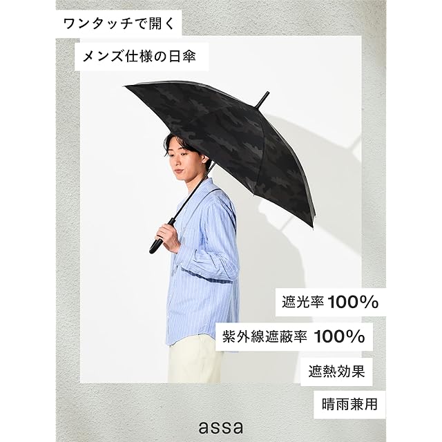 assa 日傘 メンズ 長傘 大きい 晴雨兼用 男性用 遮熱効果 熱中症対策 遮光 100% UVカット グラスファイバー ワンタッチ ジャンプ傘 (FJ288/ブラック)