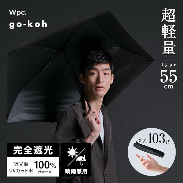 【これが、最高到達天。】Wpc. go-koh 遮光 超軽量 55cm ブラック ≪遮光率100%/UVカット率100%/UPF50+/遮熱/晴雨兼用≫ 日傘 雨傘 折りたたみ傘 通勤 通学 シンプル メンズ スリム GO002-900-102