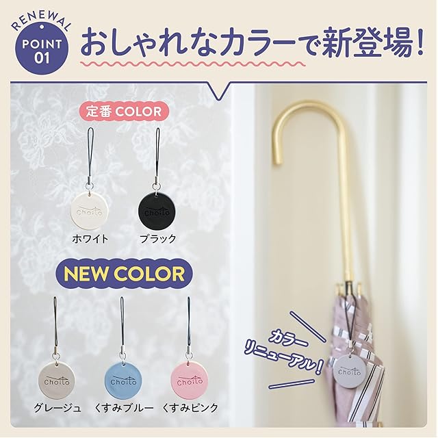 つけっぱなしでOK!かわいいデザインでアンブレラマーカーとしても使えます!カラーも全5色。いつもの傘のワンポイントに。