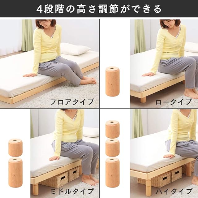 生活スタイルに合わせて4段階高さ調整できるすのこベッド。