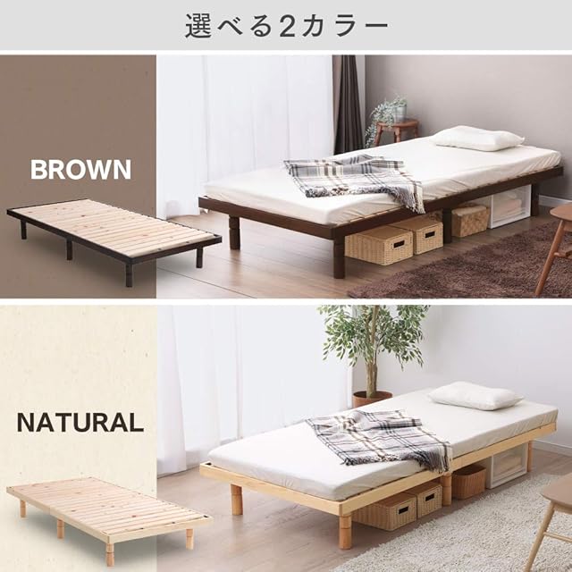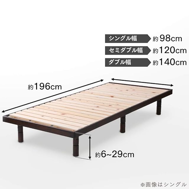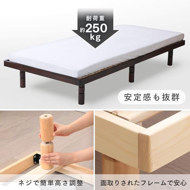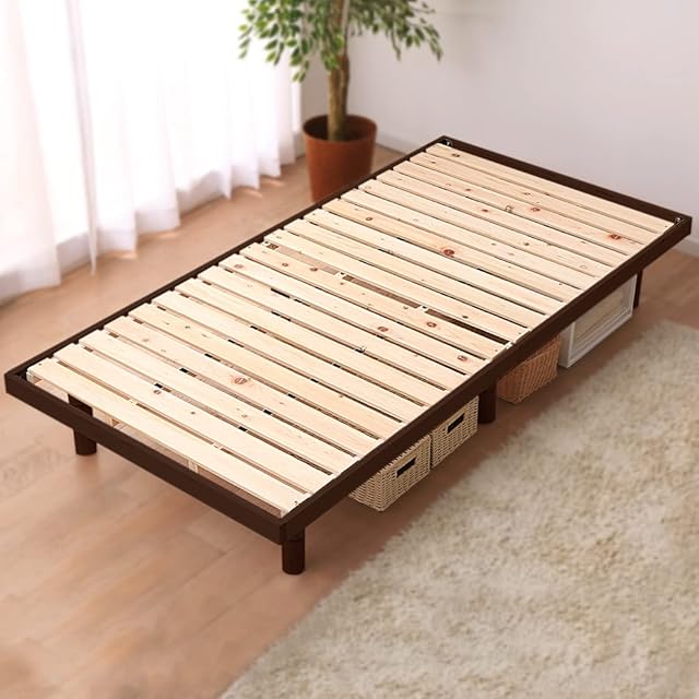 アイリスプラザ ベッド ベッドフレーム シングル 4段階 高さ調整 耐荷重約250kg 国産ヒノキ 檜 すのこベッド ブラウン 幅約98×奥行約196×高さ約6~29cm