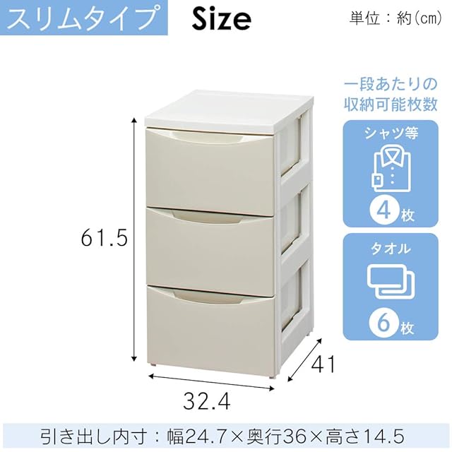 アイリスオーヤマ チェスト 3段 届いてすぐ使える完成品 スリム 幅32.4×奥行41×高さ61.5cm ホワイト / アイボリー 白 プラスチック COD-323 組立不要