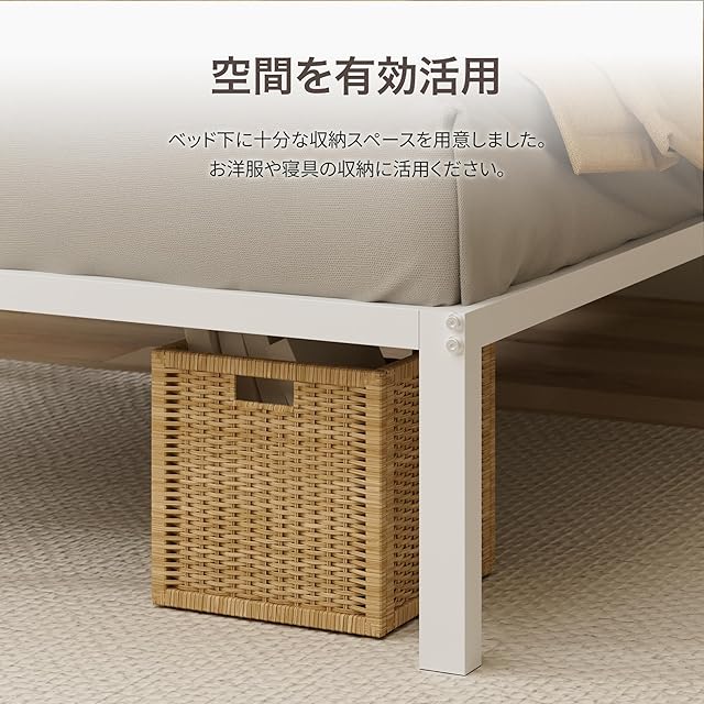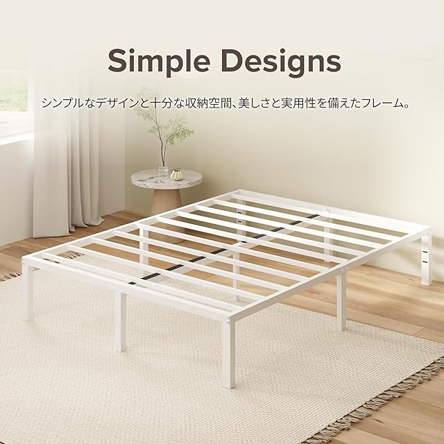 ZINUS Yelena ベッドフレーム メタル ホワイト シングル ベッド下収納 シンプルデザイン すのこ 静音 耐久性 通気性 パイプベッド 頑丈 スチール 簡単組立 工具付き ジヌス | 日本正規品 MPSC