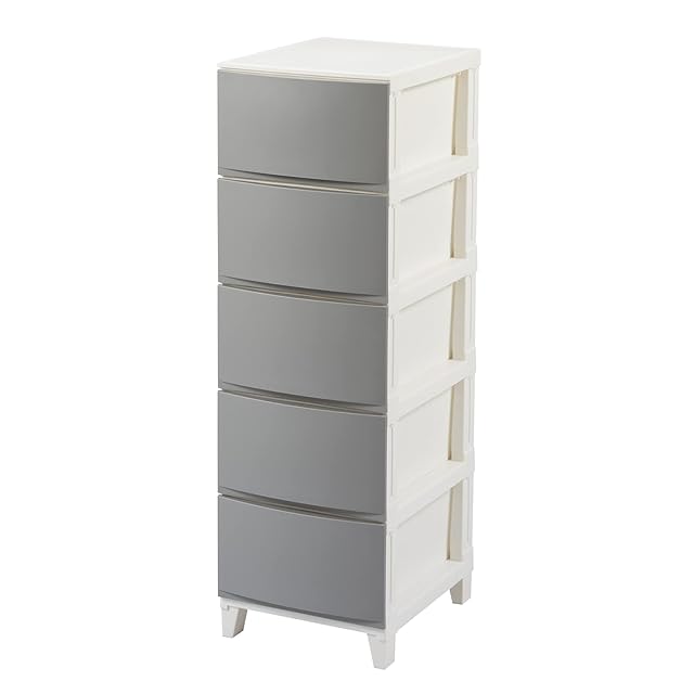 サンカ ルームス 収納 チェスト サンドグレー スリム 5段 (幅34×奥行42×高さ107cm) スルっと引き出せて スキッと締まる引き出し キズ付きにくいマット加工パネル 簡単組み立て おしゃれ 収納ケース 収納ボックス 日本製 衣装ケース タンス リビング クローゼット 洗面所ROOM'S shade RSD-S345SGY