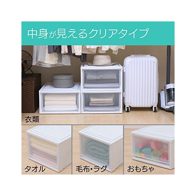 【3個セット】アイリスオーヤマ 収納ケース 引き出し クローゼット 圧倒的高コスパ 幅35×奥行45×高さ29.7cm ウォークインクローゼット 衣装ケース チェスト 日本製 ホワイト/クリア BC-MD