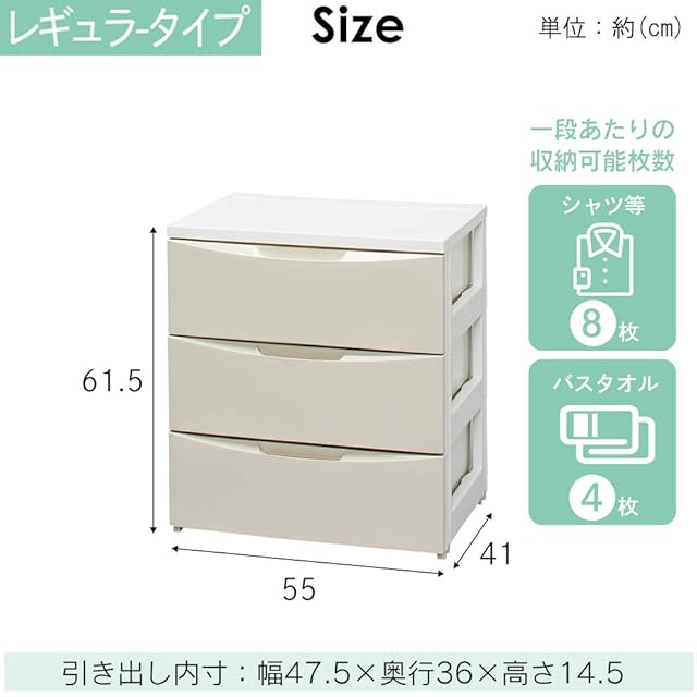 【収納の目安】Yシャツなら8枚、セーターなら4枚、バスタオルなら4枚