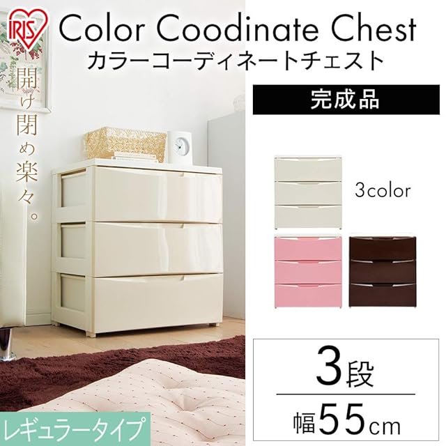 アイリスオーヤマ チェスト 3段 届いてすぐ使える完成品 日本製 幅55×奥行41×高さ61.5cm ホワイト / ブラウン 白 プラスチック COD-553 組立不要