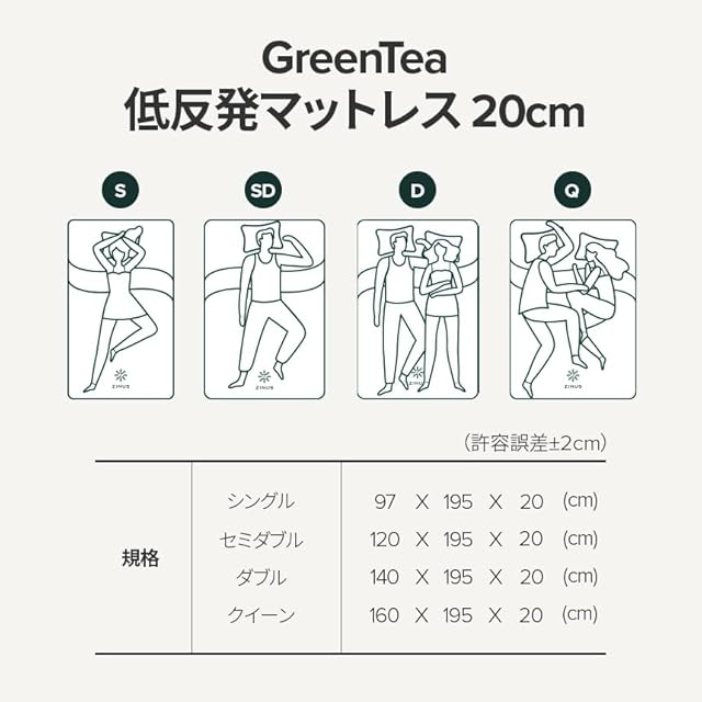 ZINUS 低反発 マットレス シングル 厚さ 20cm Green Tea 緑茶成分 抗菌 防臭 3層構造 通気性 吸湿性 体圧分散 メモリーフォーム やわらかめ 天然由来成分 | 圧縮梱包 ベッド 一人暮らし ジヌス | 日本正規品 GTFM ホワイト
