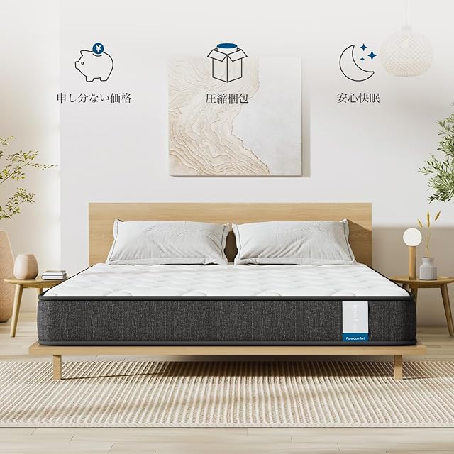 【22cmの厚みで抜群の安定感】底付きしにくく極厚22CMのマットレス。また、ボリュームのある20MMの高密度ソフトウレタンも使用しており、普通のマットレスが比べられないふんわりとした感触を体験できます。適度な柔らかさで体をしっかり押し返し、反発性を持ったコイルと相まってふかふかで雲に浮いているような寝心地を実現し、朝まで熟睡できます。