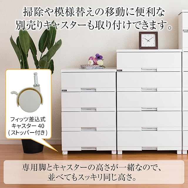 材質:【本体・引出し・ロック・ローラー】ポリプロピレン【脚】ポリプロピレン、ポリエチレン(すべり止め)【前パネル】スチロール樹脂【天板】MDF化粧板