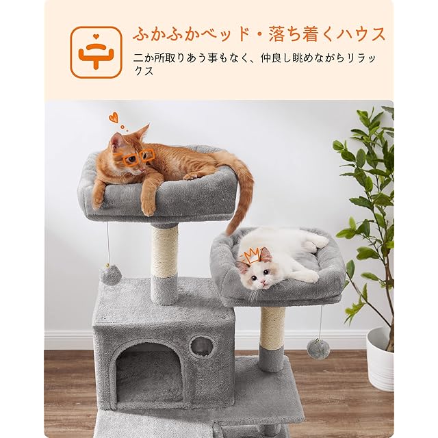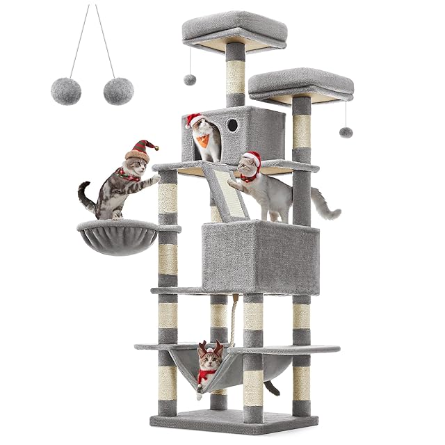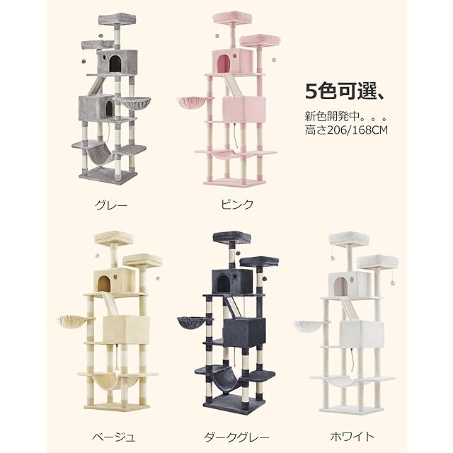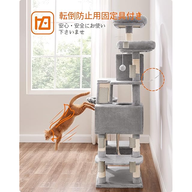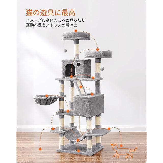 FEANDREA キャットタワー 大型猫用 人気 多頭飼い ハンモック スリム 省スペース 据え置き 高さ168cm PCT165W
