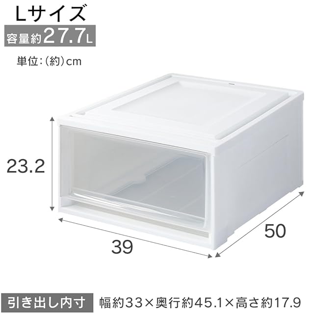 商品名:アイリスオーヤマ 収納ケース 引き出し クローゼット 圧倒的高コスパ 幅39×奥行50×高さ23.2cm ウォークインクローゼット 衣装ケース チェスト 日本製 ホワイト/クリア BC-L