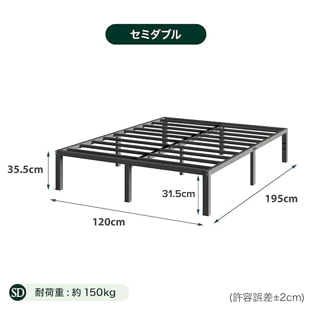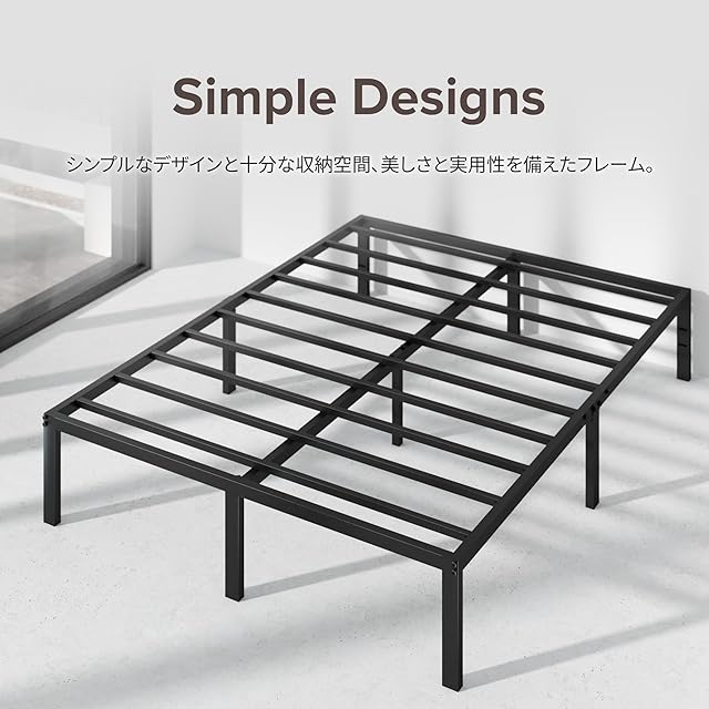 ZINUS Yelena ベッドフレーム メタル ブラック セミダブル ベッド下収納 シンプルデザイン すのこ 静音 耐久性 通気性 パイプベッド 頑丈 スチール 簡単組立 工具付き ジヌス | 日本正規品 MPSC