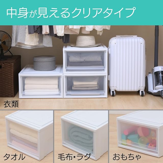 【12個セット】アイリスオーヤマ 収納ケース 引き出し クローゼット 圧倒的高コスパ 幅35×奥行45×高さ23.2cm ウォークインクローゼット 衣装ケース チェスト 日本製 ホワイト/クリア BC-M