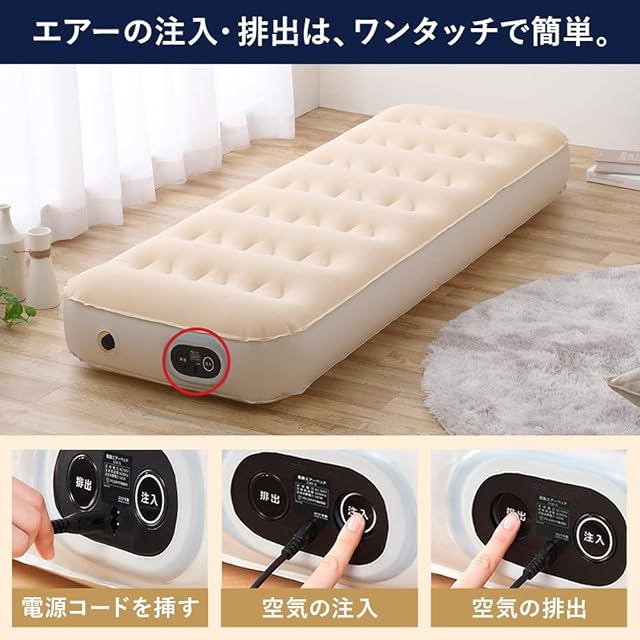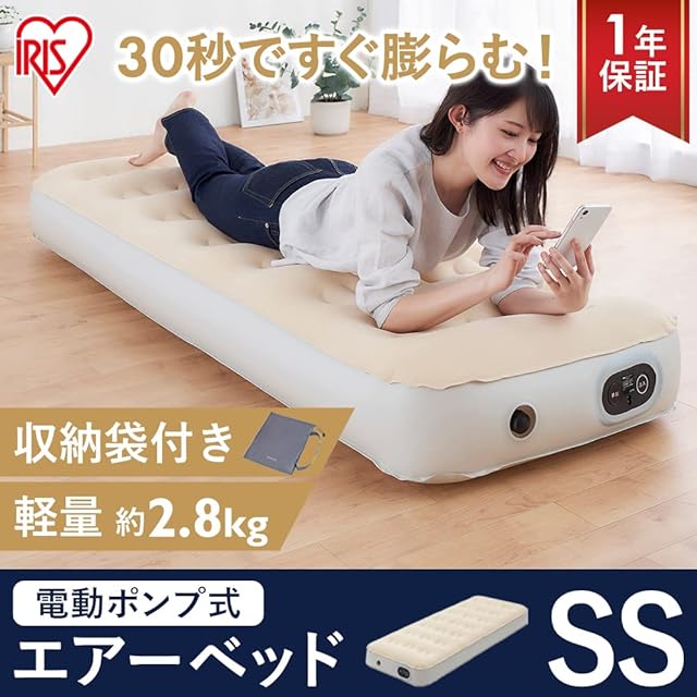 アイリスオーヤマ(IRIS OHYAMA) 自動拡張で簡単にできるエアベッド これ1つで来客用ベッドにもキャンプにも万が一の防災グッズとしても使用可能 スリムシングル EAB-SS アイボリー
