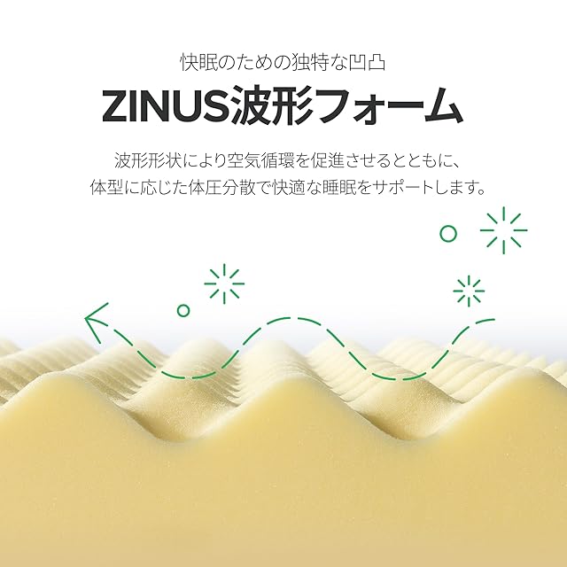 【波型フォーム】 凹凸のある波型形状により快適な睡眠のための空気循環を促進させます。また、あなたの体型に適した体圧分散のサポートにも役立ちます。