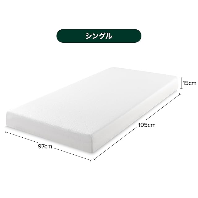 ZINUS 低反発 マットレス シングル 厚さ 15cm Green Tea 緑茶成分 抗菌 防臭 3層構造 通気性 体圧分散 メモリーフォーム やわらかめ 敷布団 天然由来成分 | 圧縮梱包 ベッド 一人暮らし ジヌス | 日本正規品 GTFM