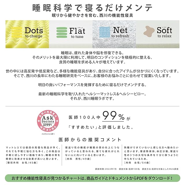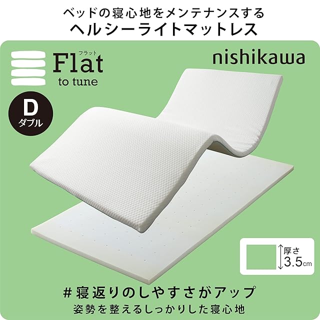 nishikawa 【 西川 】 睡眠ラボ フラット マットレストッパー ダブル 寝返りのしやすさアップ ヘルシーライトマットレス 高反発 しっかりサポート 寝返りがうちやすい エアーホールで ムレを軽減 洗える側地 ホワイト HD22253413