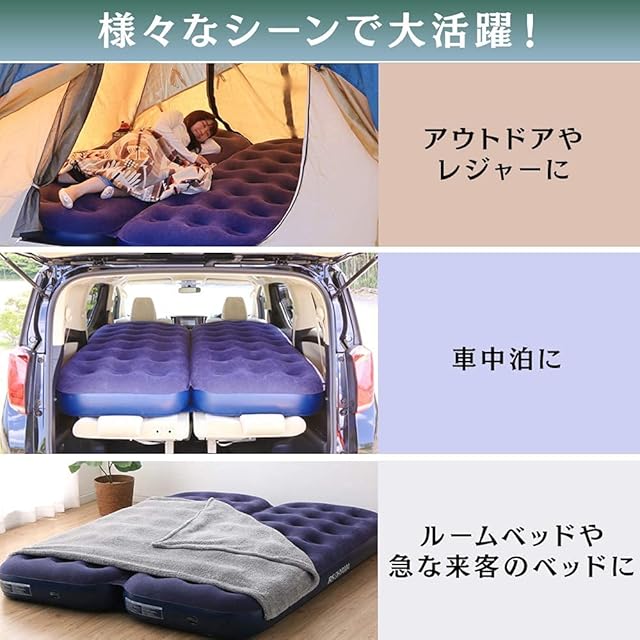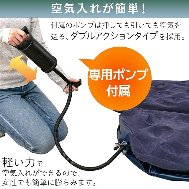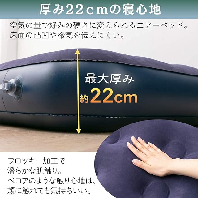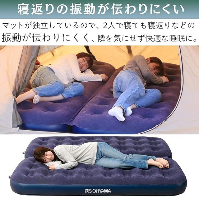 【防災対策にも!】 アイリスオーヤマ エアーベッド 簡易ベッド ダブル ネイビー 厚み22cm極厚ボリュームで快適な寝心地 専用ポンプ付き 軽い力で簡単空気入れ 災害時/緊急事態のもしもの為に 2人で寝ても振動が伝わりにくい 折り畳むとコンパクト 幅150×長さ191×厚さ22cm 車中泊 アウトドア レジャーキャンプ 急な来客用にも使用できる H573483