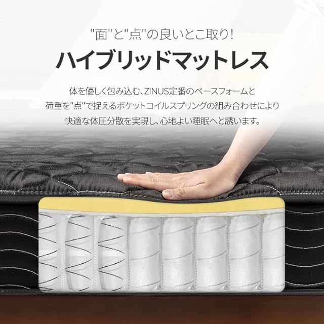 ZINUS ジヌス ベッド マットレス シングル ポケットコイル 15cm ブラック 硬め mattress コスパが良い 体圧分散 耐久性 5年 体を適度に支える 通気性 長持ちする 静音 厚め設計 ホテル品質 ベーシック BASIC