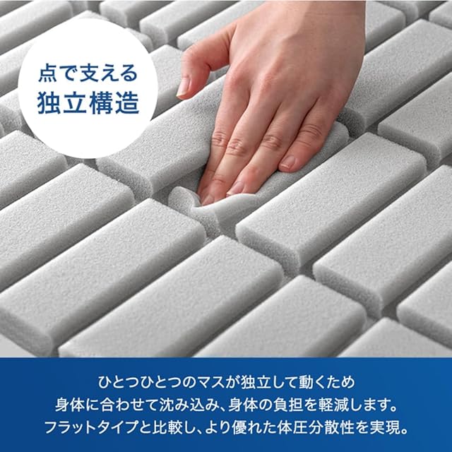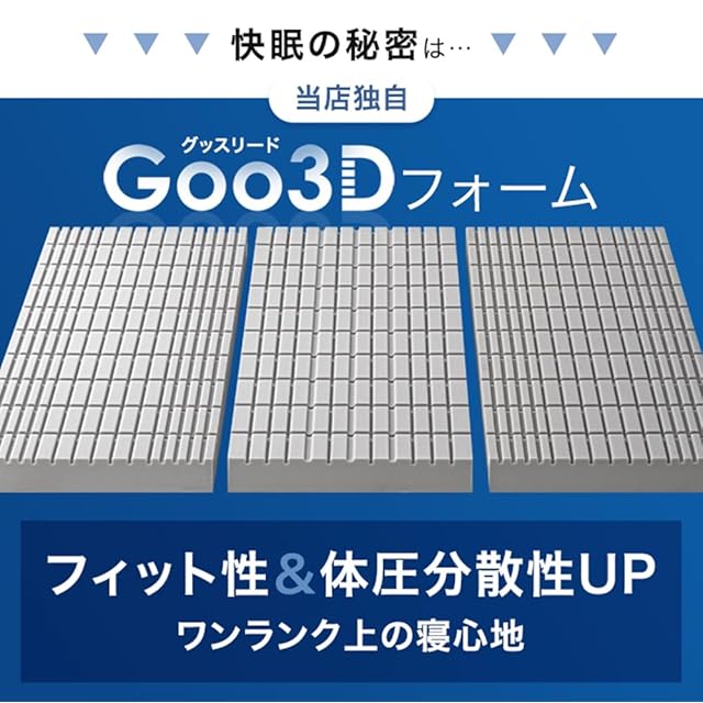 Goo3D《グッスリード》マットレス セミシングル 幅60cm【3D構造で理想の寝姿勢】厚み10cm 高反発 硬さ190N 三つ折り 敷布団 洗える パイル 43300153(108783)