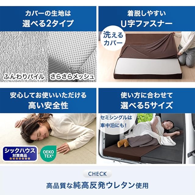 【素材】【中材】高反発ウレタンフォーム(反発弾性:40%±3%)密度:25D<25kg/m3>190N【側生地】パイル生地:シンカーパイル(ポリエステル100%)【生産国】中国