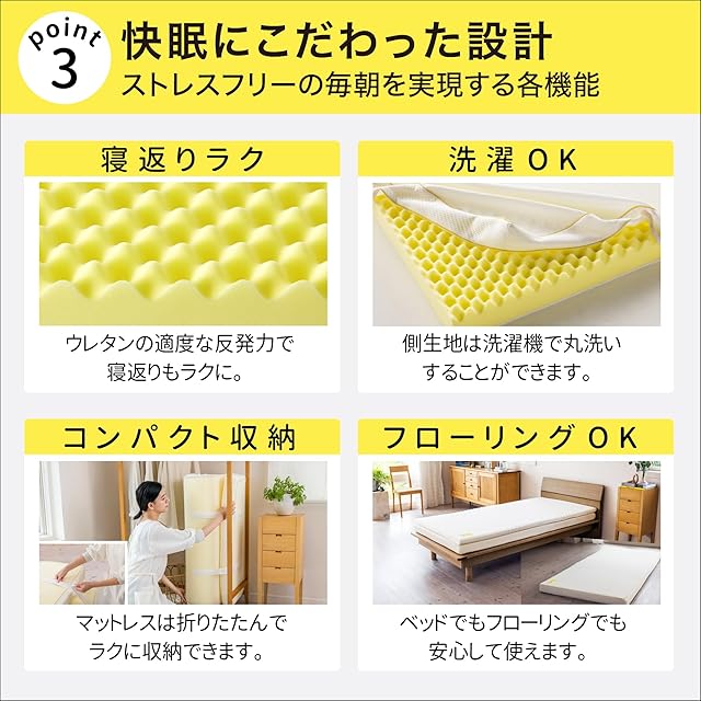 寝るだけで体をメンテするヘルシーマットレス。腰のこりやすい方におすすめです。