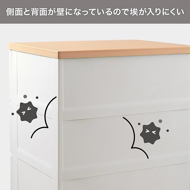 収納の目安(約):各引出しにトレーナーなら10枚、セーターなら6枚、Yシャツなら8枚