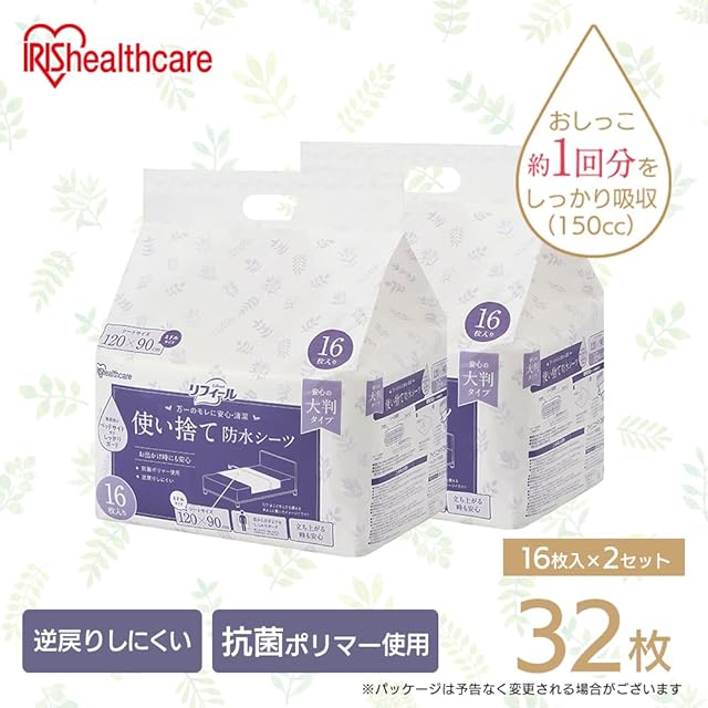 アイリスオーヤマ(IRIS OHYAMA) 使い捨て防水シーツ 大判タイプ ミドルサイズ 120cm×90cm 32枚入