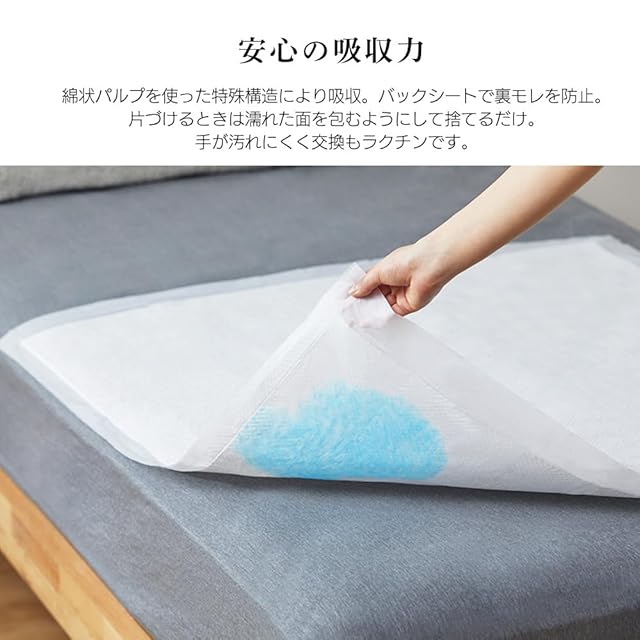 安心の大判タイプ。吸収体がベッドサイドまでしっかりガード。