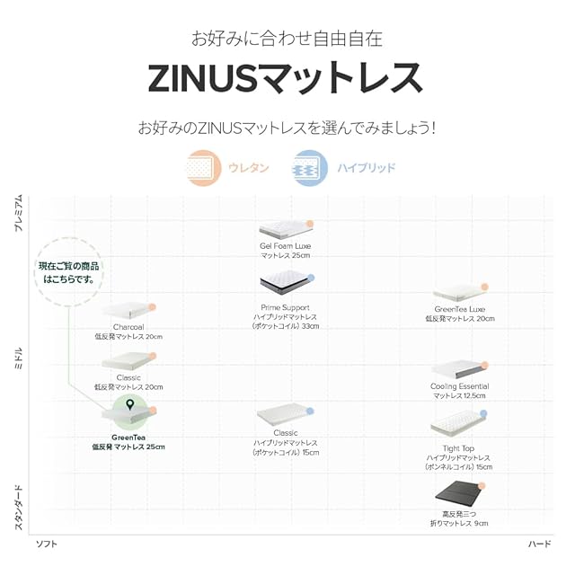 【炭、緑茶抽出成分配合】緑茶成分と炭成分が注入されており、臭いとバクテリアを自然に防ぎます。Zinus(ジヌス)のフォームには石油成分の代わりに天然植物油を使用しており、自然にもやさしいです。
