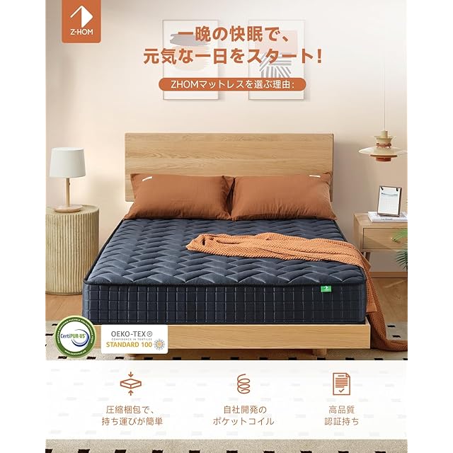 【国際認証で品質】:当社のマットレスはISO9001認証工場で製造されており、oeko-tex認証も取得しています。高品質の製品と安心のアフターサービスを提供しています。※マットレスは柔らかい素材とコイルを使用しているため、保管や運搬の方法、計測の仕方によっては、サイズに若干の誤差が生じる可能性がございますので、ご了承ください。