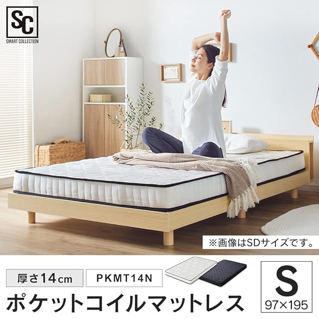アイリスプラザ こだわり10層構造ポケットコイルマットレス 部屋が広く見える薄型タイプ 厚さ14cm 高密度コイル420個 ムレを防ぐ3Dメッシュ生地 らくらく設置 圧縮梱包でお届け シングル ブラック PKMT14N-S