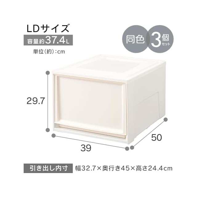 【3個セット】アイリスオーヤマ 収納ケース 引き出し クローゼット 圧倒的高コスパ 幅39×奥行50×高さ29.7cm ウォークインクローゼット 衣装ケース チェスト 日本製 ホワイト/クリア BC-LD