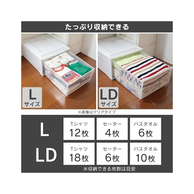 【たっぷり収納:容量約27.7L】小物や衣類などたっぷり収納。収納目安:Tシャツ約12枚/セーター約4枚/バスタオル約6枚。