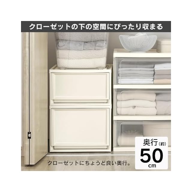 【クローゼットにぴったり収まる】クローゼットの平均的な奥行は約45~60cm。BCチェストは“奥行約50cm”なのでちょうど良いサイズ感。