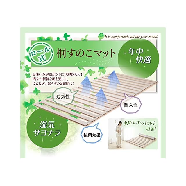 【通気性抜群】布団の下に敷くだけで、新鮮な風を通して、カビやダニから守り清潔に保つ。<br>天然木の桐は、丈夫で長持ちし、とても軽いので移動もラクラク。吸放湿にも優れているので、ベッドにはぴったり。