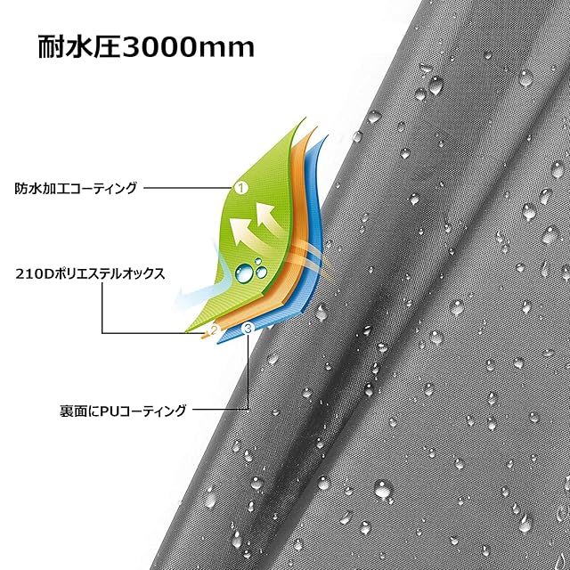 【210Dオックスフォード生地】厚手のオックスフォード生地を採用しており、優れた耐摩耗性があり、頑丈で引裂抵抗力あり、長年の使用でも摩耗しにくく、耐久性も優れます。各角に金属ハトメがあり、弾力性あるゴム紐もつき、簡単に設置することができます。