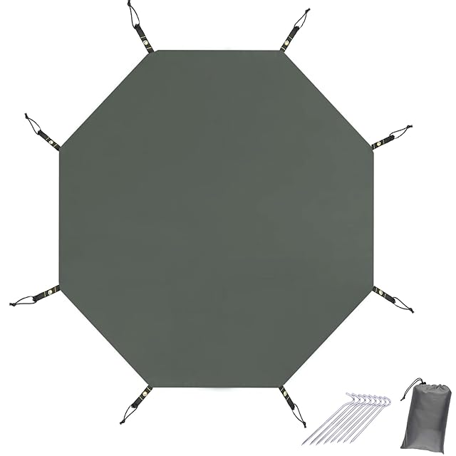 Farfly テントシート グランドシート 八角 防水 アウトドア キャンプ 軽量 厚手 ワンポールテント用 シート コンパクト 持ち運び便利 収納袋つき ペグ付き 385x350cm