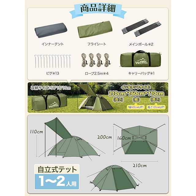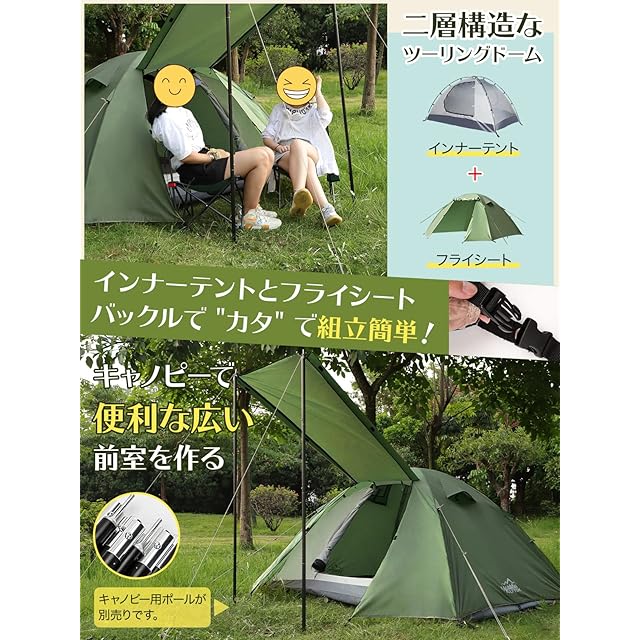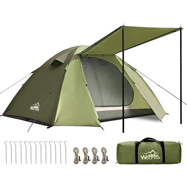テント 2人用 4人用 【幅広い内室&通風 携帯超軽量】 簡単設営 前室あり 耐水圧4000mm 防蚊ネット付き 自立式 二重層構造 コンパック収納可能 二重層構造 テント ファミリー ドームテント ツーリングドーム キャンプ アウトドア 防風防雨防雪 登山/釣り/防災用 wolfyok outdoors(ウルフヨックアウトドアーズ) 【国内ブランド】