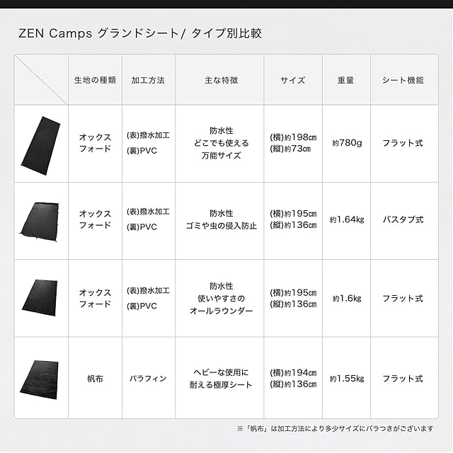 ZEN Camps グランドシート ハーフサイズ 198×73cm 厚手 防水 撥水 キャンプ コット テント タープ レジャーシート 軽量