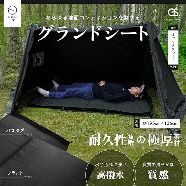 ZEN Camps グランドシートレジャーシート テント 195×136m 防水 両面撥水 厚手1680D 高耐久 耐摩耗 収納袋付き キャンプ アウトドア ピクニック (フラット型)