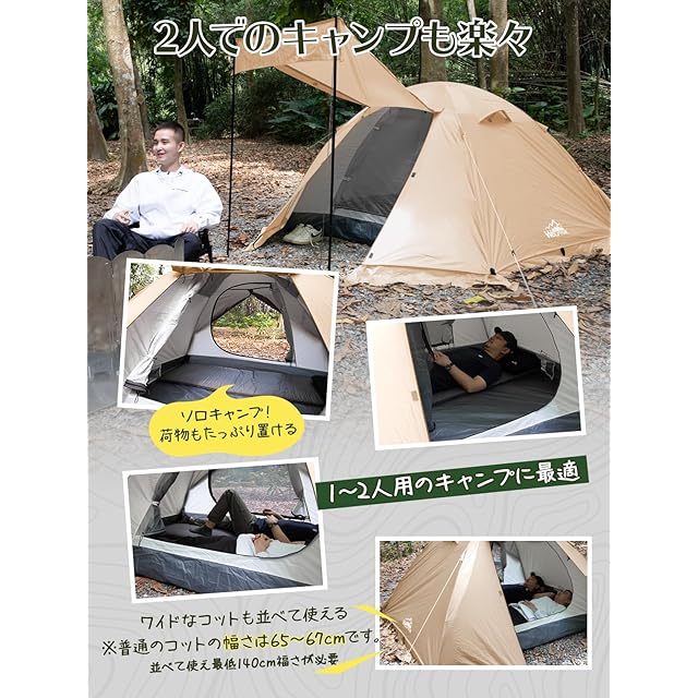 テント 2人用 4人用 【幅広い内室&通風 携帯超軽量】 簡単設営 前室あり 耐水圧4000mm 防蚊ネット付き 自立式 二重層構造 コンパック収納可能 二重層構造 テント ファミリー ドームテント ツーリングドーム キャンプ アウトドア 防風防雨防雪 登山/釣り/防災用 wolfyok outdoors(ウルフヨックアウトドアーズ) 【国内ブランド】