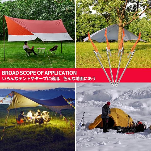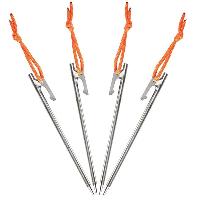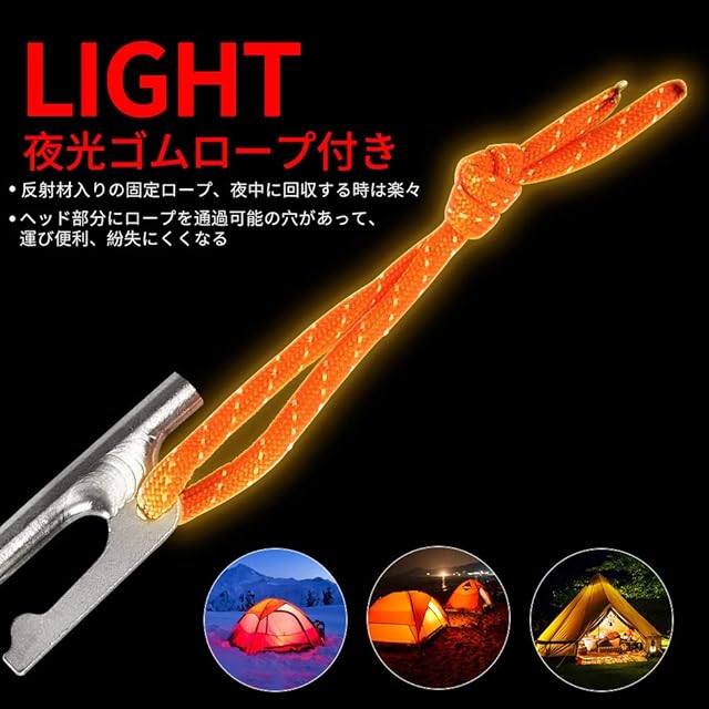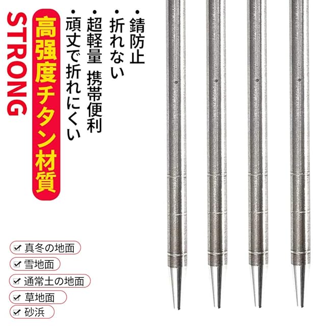 Soomloom ペグ チタン製 固定ロープ付き テント用 タープ用20㎝ 4本セット