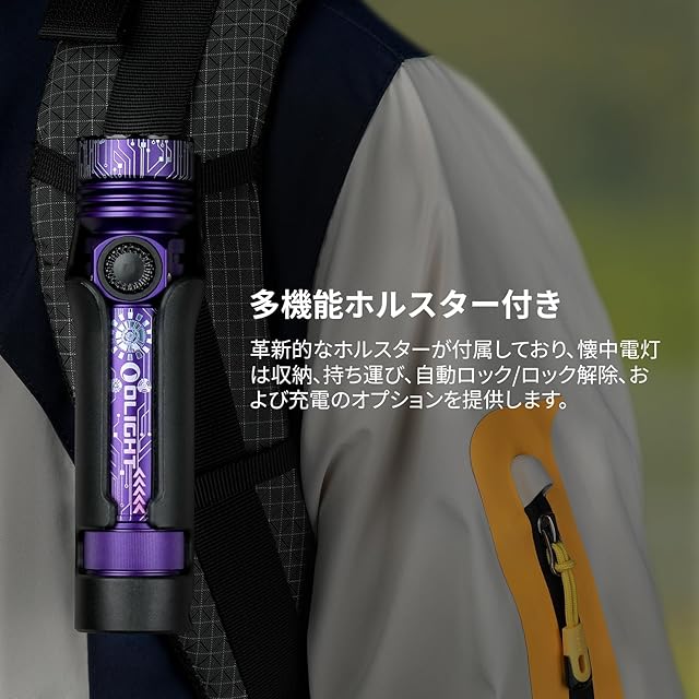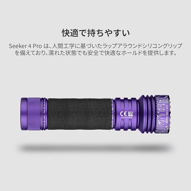OLIGHT(オーライト) Seeker 4 Pro LEDライト 懐中電灯 超明るい4600ルーメン 最長射程260m 充電式 Type-C充電 防災 アウトドア 高耐久 防水IPX8 耐衝撃 残量表示 キャンプ 登山 夜釣り 停電対策(Cyber Violet)