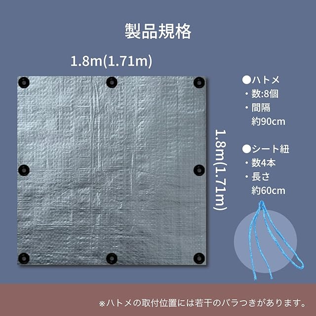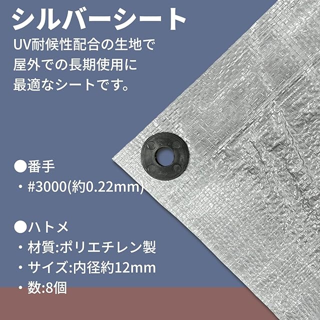 【オリジナルハトメ】当社オリジナルのプラハトメを採用。一般的なアルミハトメよりも変形・ズレ・脱落に強い仕様のハトメとなっています。シートと同一素材のため廃棄時に分別も必要ありません。