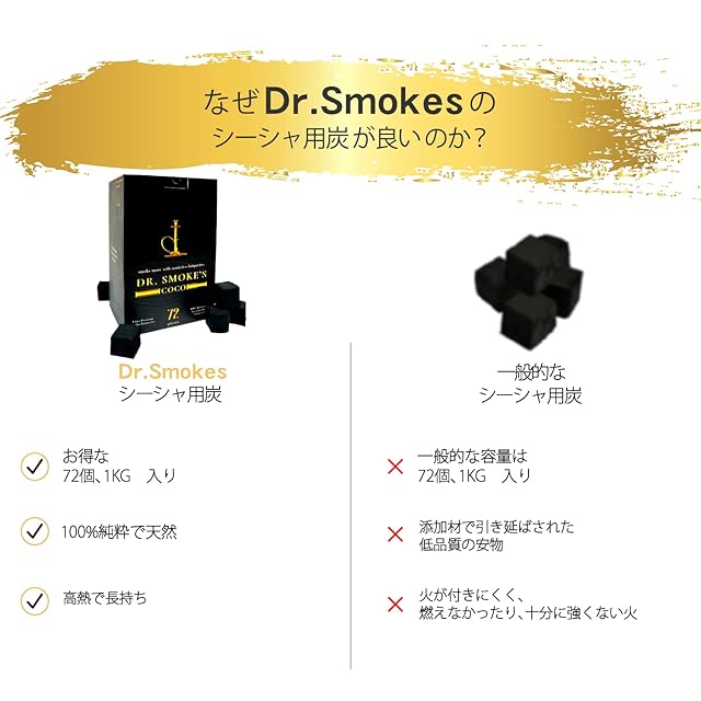 Hilax Dr. Smokes シーシャ 炭 1kg 72個入 ココナッツ 100% グレードS インドネシア産 ナチュラルチャコール ナチュラル 匂わない 持ち運び 炭 フーカー 水たばこ (① 72個入)